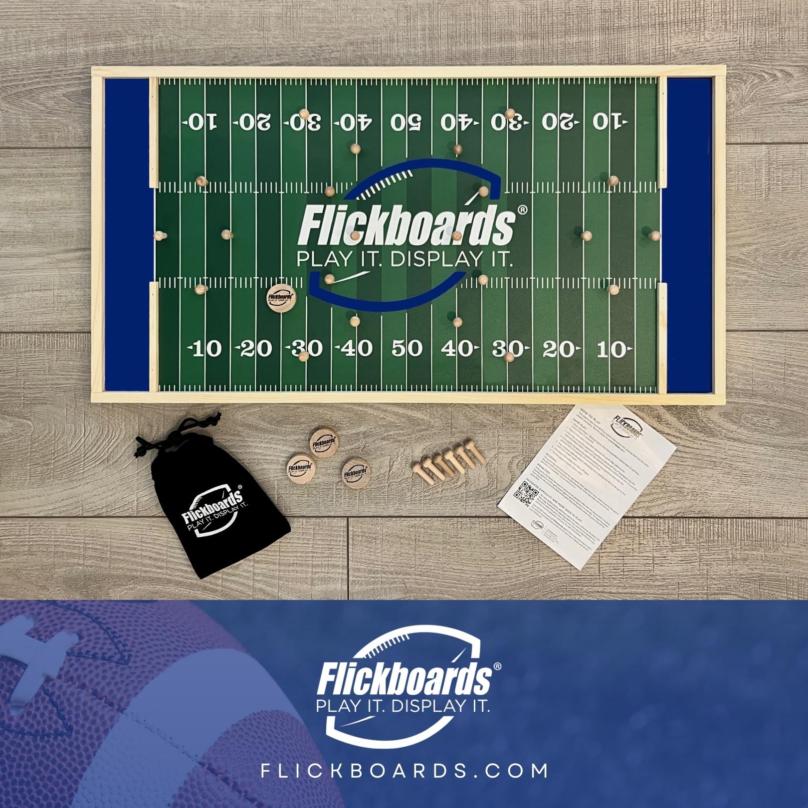 Entertain family and guests with the Blue Football Flickboard. This Football themed Flickboard is sure to engage anyone and everyone in an entertaining and friendly competition.
