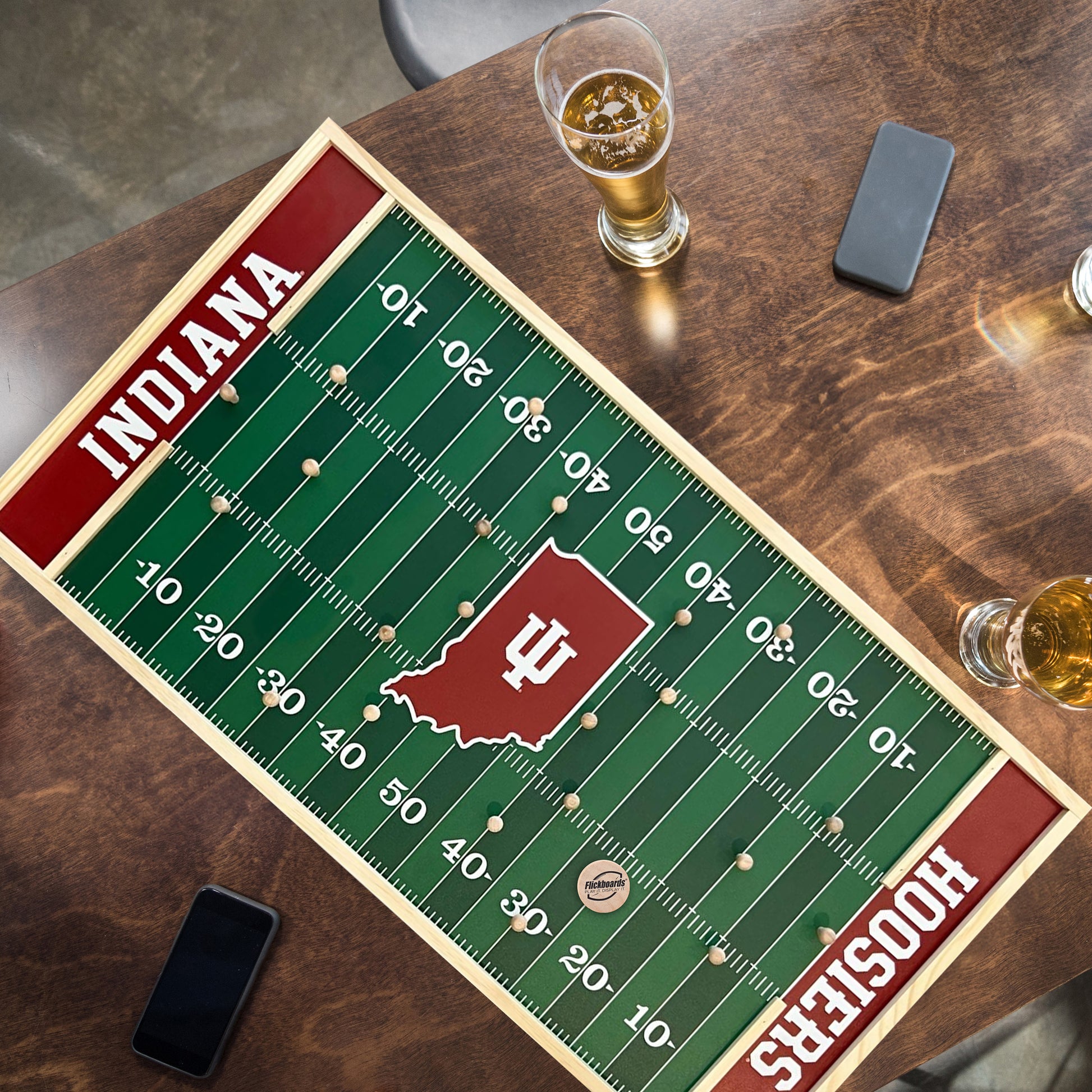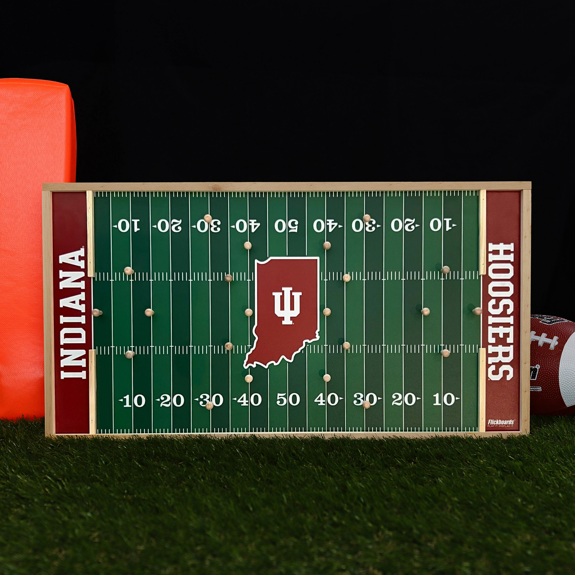 Introducing the officially licensed Indiana Hoosiers Football Flickboard - perfect for fans of all ages! This 2-player game is reminiscent of paper football, with wooden chips flicked down the board to score touchdowns.