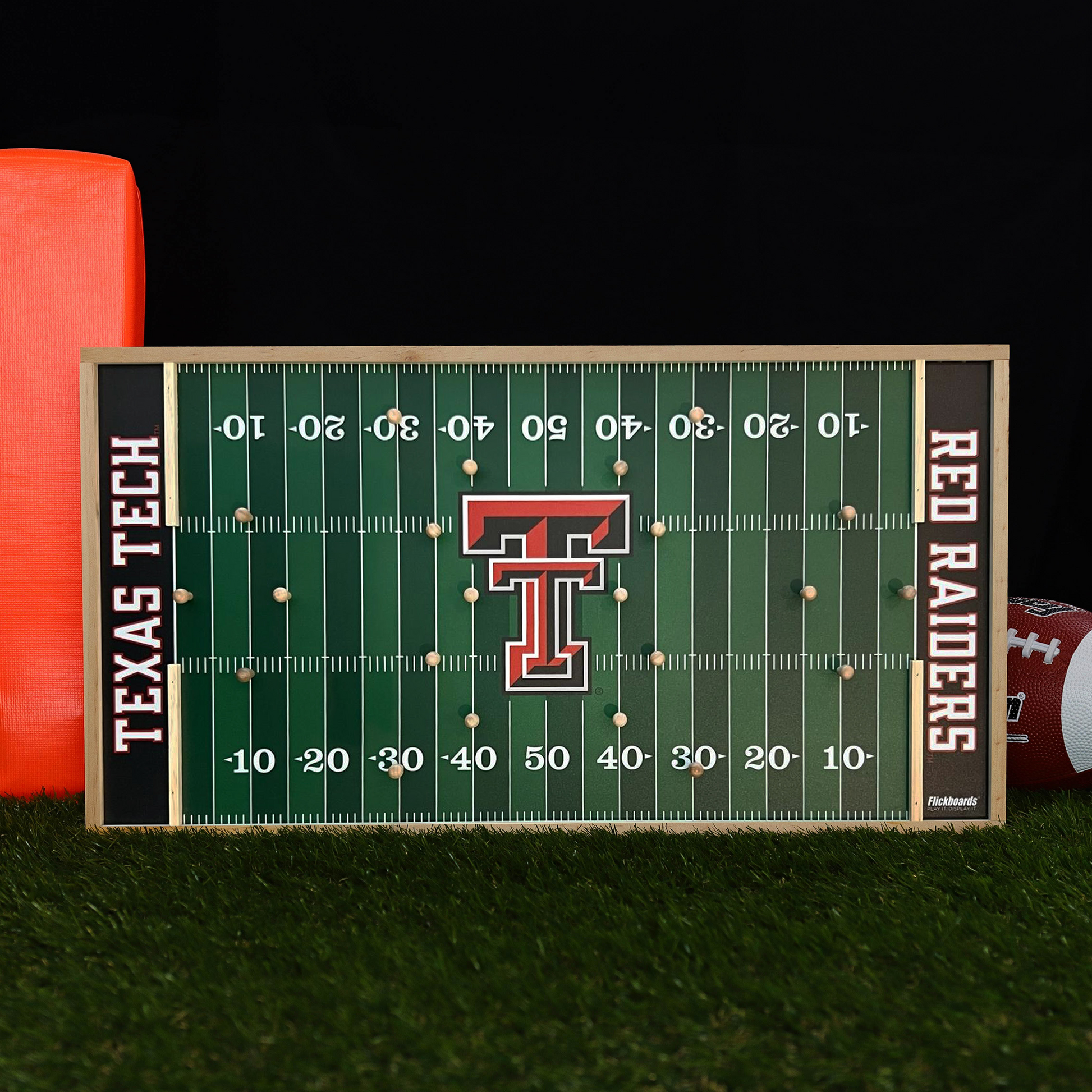 Introducing the officially licensed Texas Tech Red Raiders Football Flickboard - perfect for fans of all ages! This 2-player game is reminiscent of paper football, with wooden chips flicked down the board to score touchdowns.
